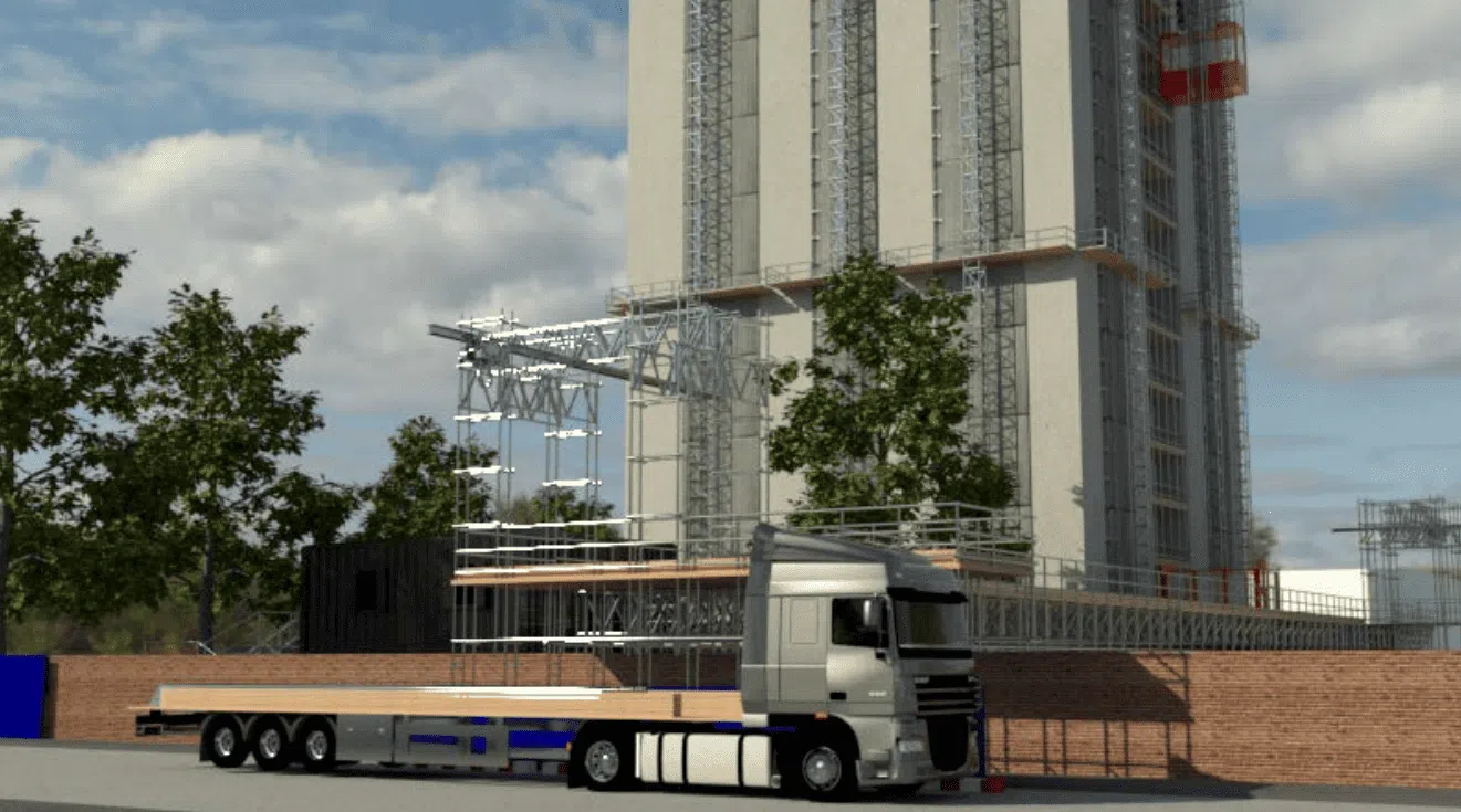 Millcroft’s integral role in the project is to provide scaffolding, which will form a logistics gantry and distribution route and provide safe access to the site accommodation for workers. This entails the erection of a heavy-duty gantry extending from the face of Blashford Tower towards the site welfare facility, with scaffolding spreading to the Adelaide Medical Centre adjacent to Blashford Tower.