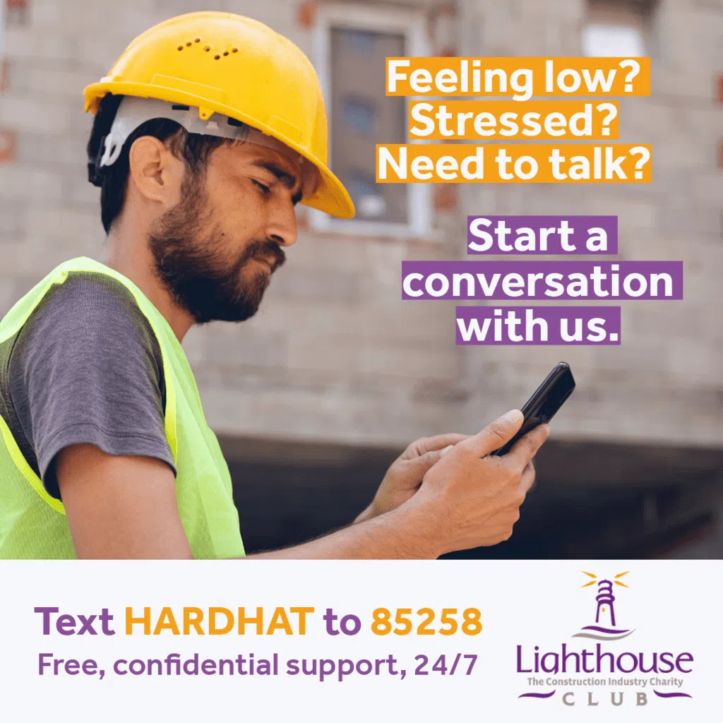 The Lighthouse Construction Industry Charity has added another route to vital wellbeing support by launching their text HARDHAT to 85258 service to provide immediate support to the construction community.
