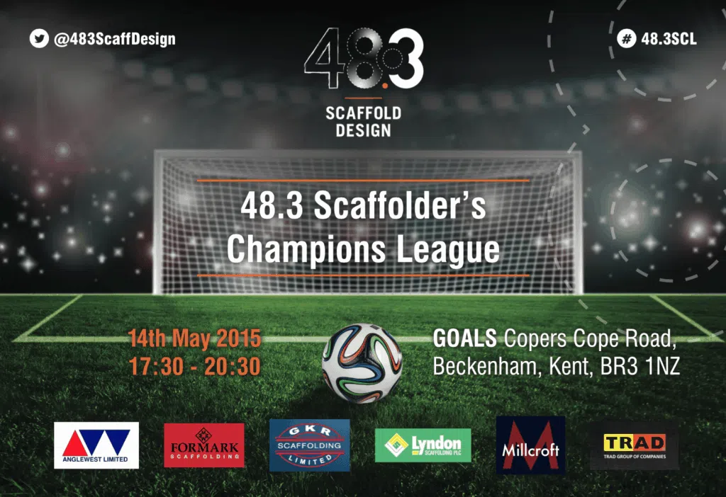The football season maybe coming to a close but for the Scaffold industry it’s only just beginning! The testosterone will be pumping on Thursday 14th May when six leading scaffolding companies battle it out in the 48.3 Scaffolder’s Champion League at Goals, in Beckenham!