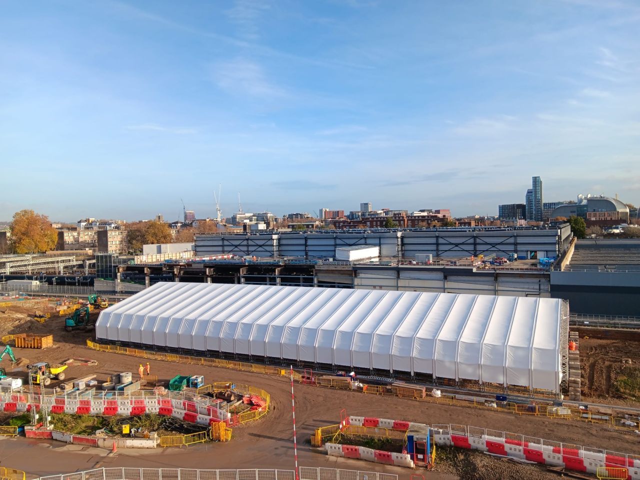 The structure provides a controlled and fully screened environment for complex activities on the Euston project. It has been designed so it can move as works progress, allowing teams to maintain activity without affecting nearby piling operations.