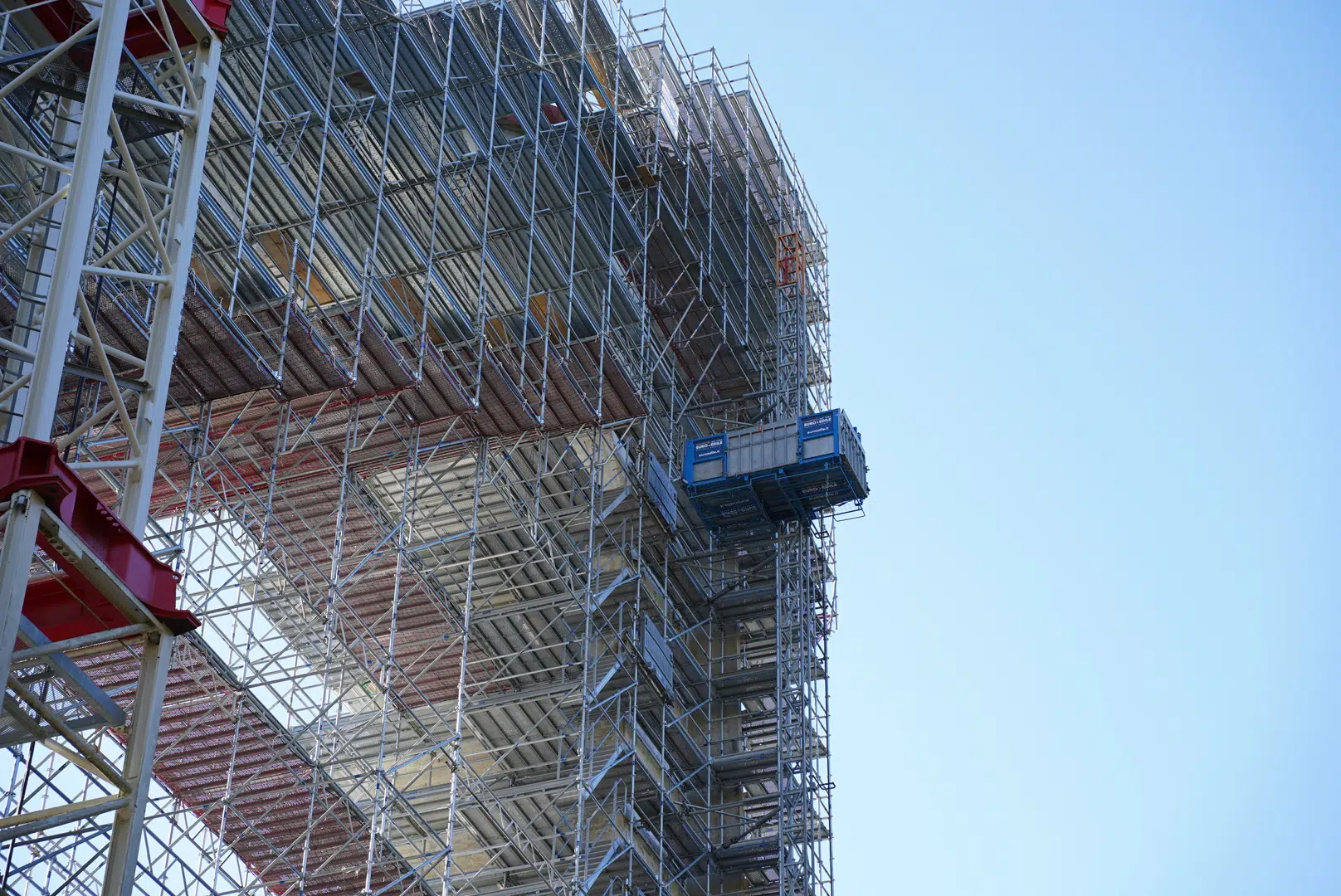 All loads were transferred directly to ground level, with the scaffold designed to withstand wind loading whilst maintaining stability across its full height.