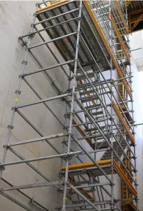 “Our PERI UP system is a system scaffold, which means everything has set lengths and heights. All you need is a hammer to lock the equipment securely,” explained Gilbert Kee, sales engineer at PERI UK. “This gravity lock system is incredibly easy to erect; you literally just drop the components in, strike it with a hammer, and it’s secure.”