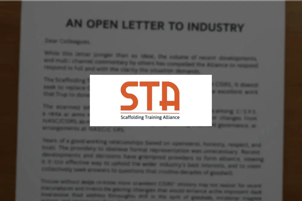 The Scaffolding Training Alliance (STA) has issued a detailed open letter to the industry, calling for an immediate pause to planned changes to the CISRS training scheme and raising concerns over governance, consultation, and transparency.